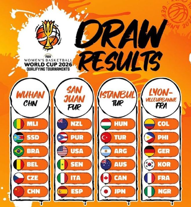 2026年女篮世界杯的预选赛分组抽签仪式,在昨晚进行完毕,中国女篮被分在A组,对手有巴西女篮、比利时女篮、捷克女篮、南苏丹女篮和马里女篮。