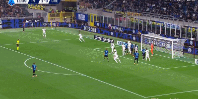 第38分钟,迪马尔科传中,博尼飞身头球破门,国米2-0领先